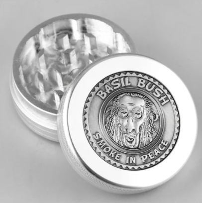 These high quality grinders stand out from the crowd as they have the Basil Bush Logo embossed in 3D on the lid. Each grinder is made from polished aluminium and contains diamond-shaped grinding teeth. The lid is held on magnetically and the 4-part grinder has a mesh and storage compartment and includes a plastic cleaning tool. The 3D image of Basil is extremely realistic - right down to the dreadlocks! Available in both 2-part and 4-part versions in both 40mm and 50mm diameter sizes. These are a high quality addition to the Basil Bush Smoking Accessories range.