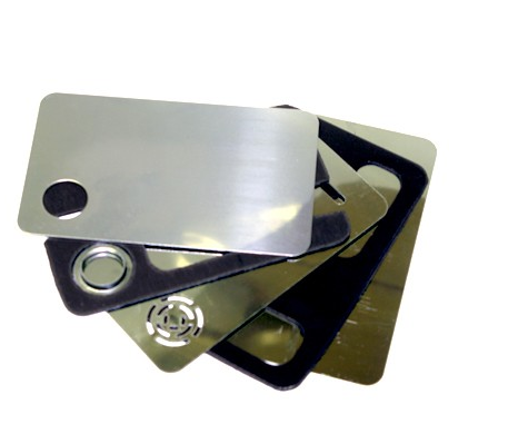 Credit card sized metal pipe with internal smoke routing.